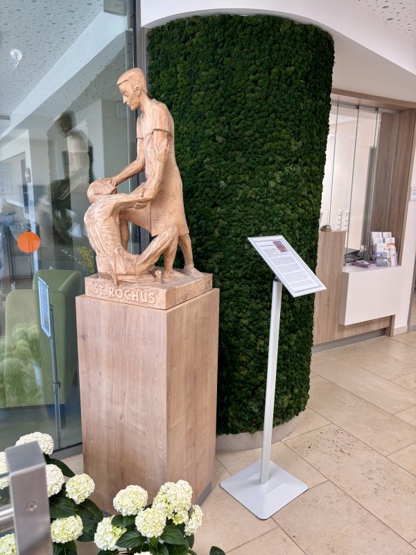 Im Zuge der Neuerungen ist auch die ein Meter große Holzskulptur des Heiligen St. Rochus wieder mehr in den Fokus der Einrichtung gerückt worden. Die von dem Steinheimer Künstler Wilhelm Humpert geschaffene Statue erinnert an den Schutzpatron des Seniorenhauses. Durch eine eigens dafür gebaute Holzsäule, präsentiert sie sich jetzt sehr zur Freude der aus Steinheim stammenden Bewohner direkt im Eingangsbereich des Gebäudes.